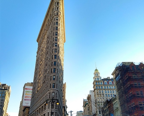 Twintig jaar geleden was Overamstel echt een gribusbuurt, het thuishonk van de Hells Angels en de Bijlmerbajes. Nu worden we meteen geconfronteerd met de wolkenkrabber State, een ontwerp van ZZDP architecten. Ik vind het wel een gaaf ding, met zo’n ronde hoek in glas. Het verwijst naar het Flat Irongebouw aan Broadway op Manhattan. Dat gebouw heeft neo-Renaissancistische decoratie-elementen; State is bekleed met ouderwetse bakstenen en blijft tot in lengte van jaren een mooi ding.