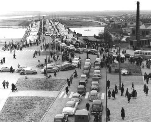 De Omval is het gebied ten oosten van de kronkel in de Amstel. Op de foto hierboven zie je hoe het gebied er rond 1935 bij lag. Bovenin stroomt de rivier richting het IJ. Op de voorgrond de Zuidergasfabriek en op de achtergrond links een jeugdige Rivierenbuurt.