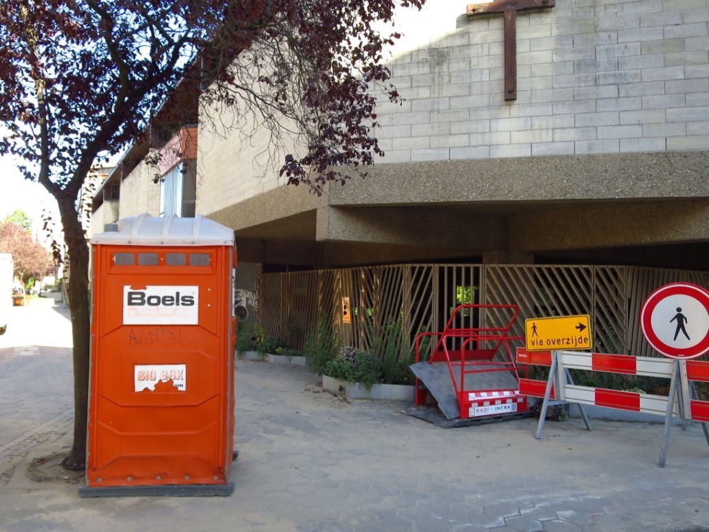 Op de hoek is een waar beeldhouwwerk van baksteen te bewonderen. Zelfs de inscriptie is in baksteen ‘uitgehouwen’. Ergens doet het denken aan de avant-gardeschilderstijlen uit de eerste decennia van de 20ste eeuw, het kubisme, suprematisme, futurisme.