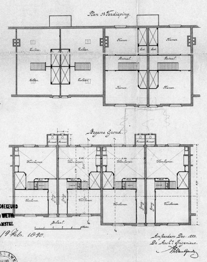 Als de werknemers van de diamantslijperij geluk hadden dan mochten ze een woning huren van De Woning-Maatschappij, een door de toenmalige elite opgerichte onderneming die hier in de buurt 68 woningen voor ambachtslieden exploiteerde, zoals in de Diamantstraat. De woningen bestonden uit een voorkamer van 8 m2 en een woonkamer van 18 m2, een toilet en een zolder. Ze zijn ontworpen door A.L. van Gendt, die tal van prominente utiliteitsgebouwen voor de stad concipieerde.